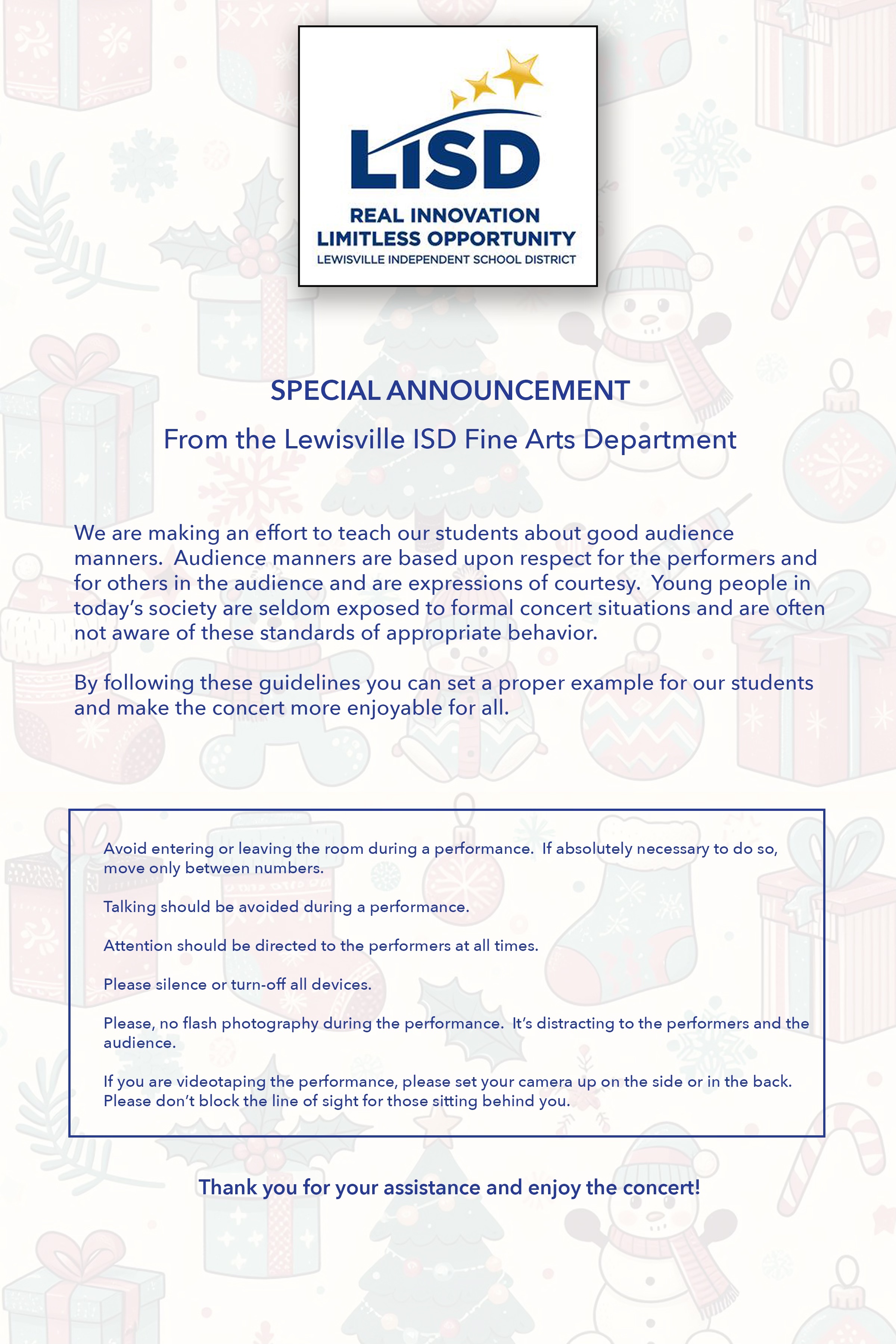 Middle School Symphonic & Chamber Call Time: 2:45pm