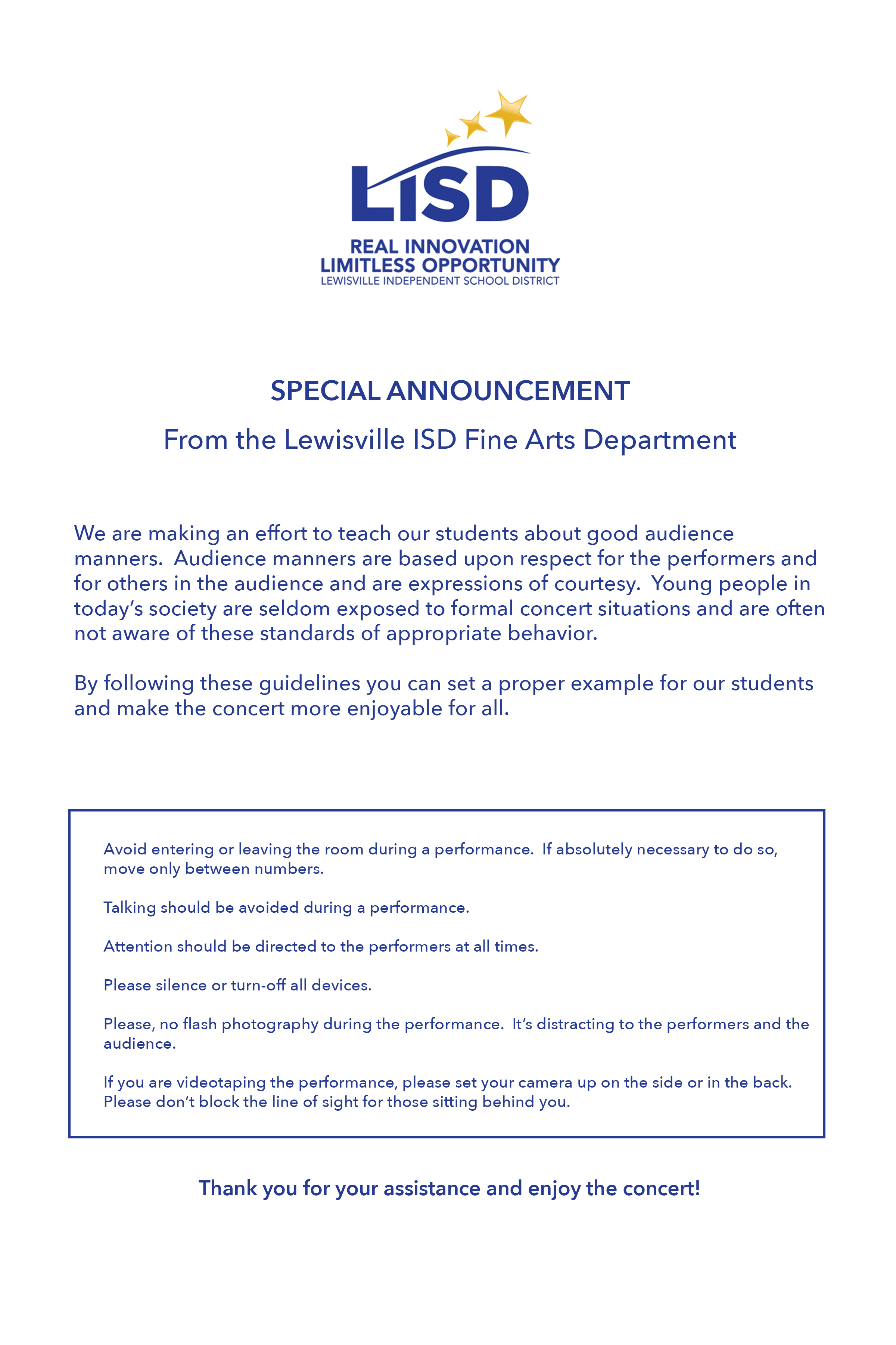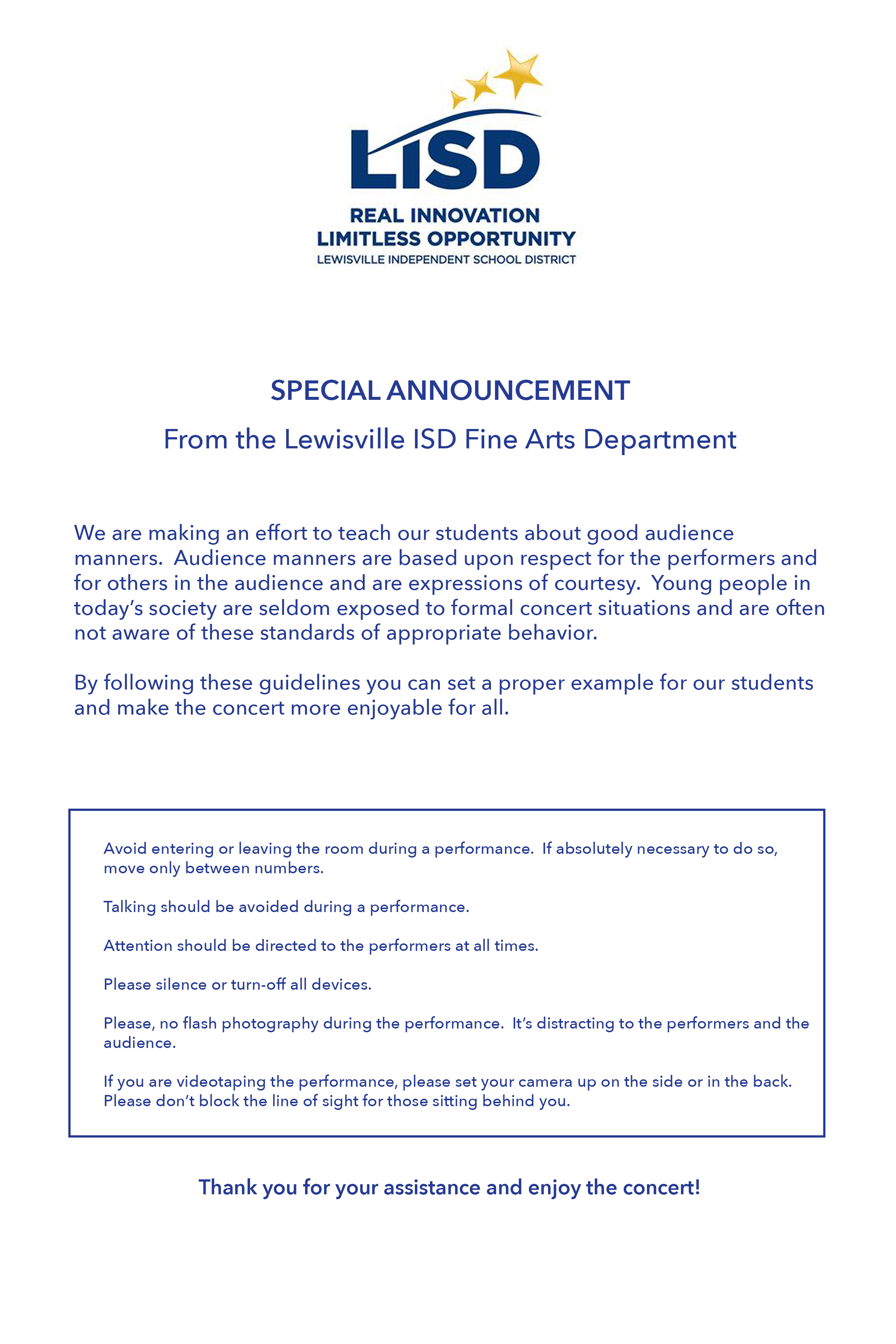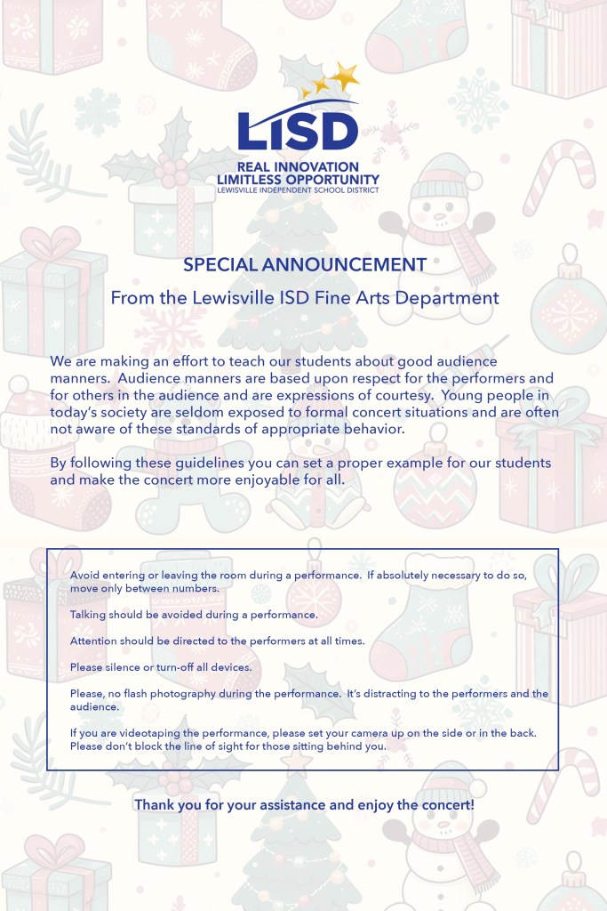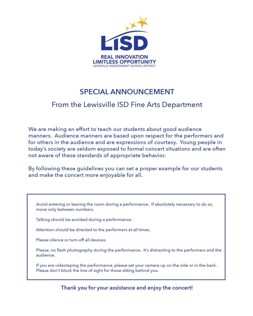 Please follow the diagrams below and make sure to follow the instructions from your orchestra director. We’ll see you all soon!