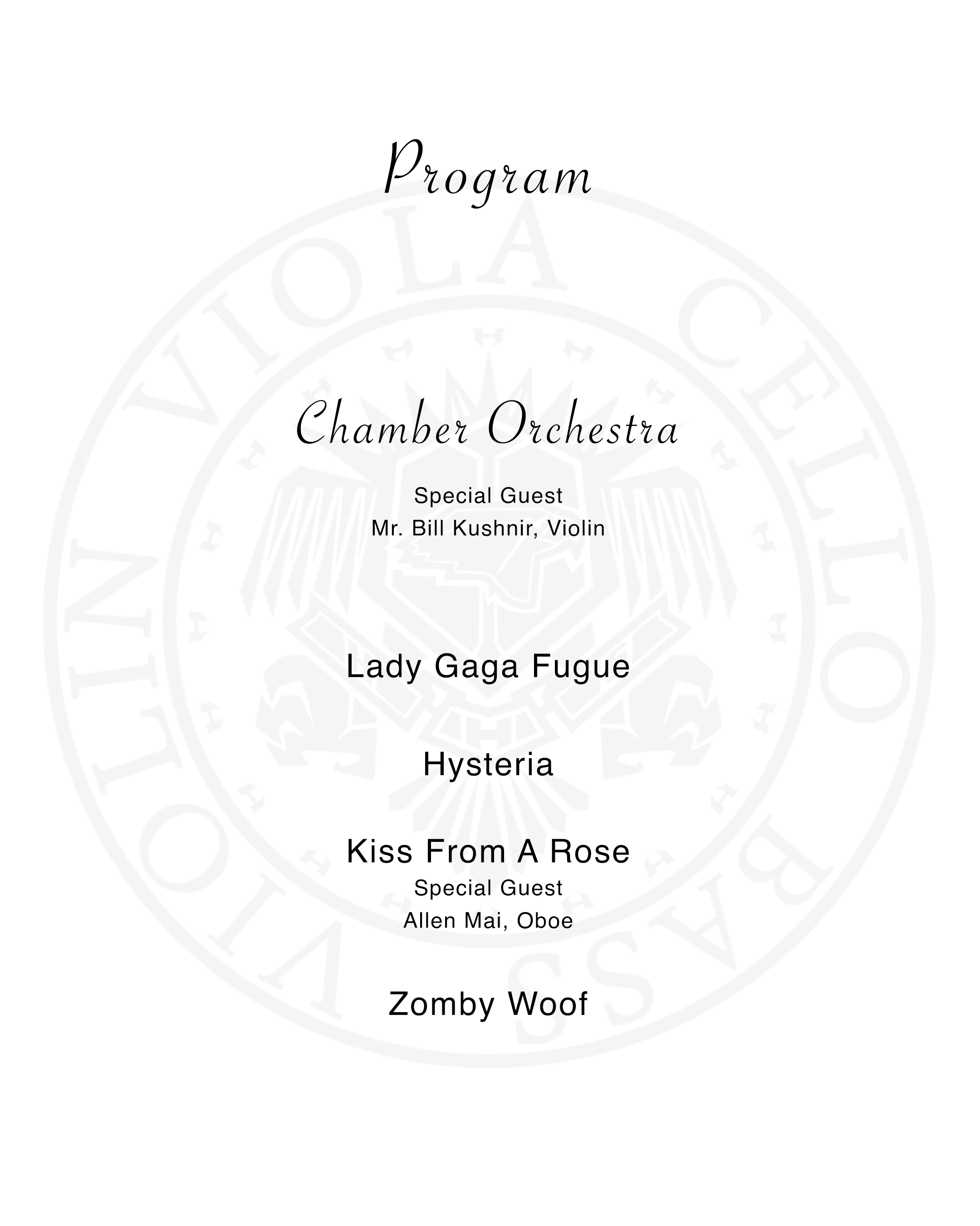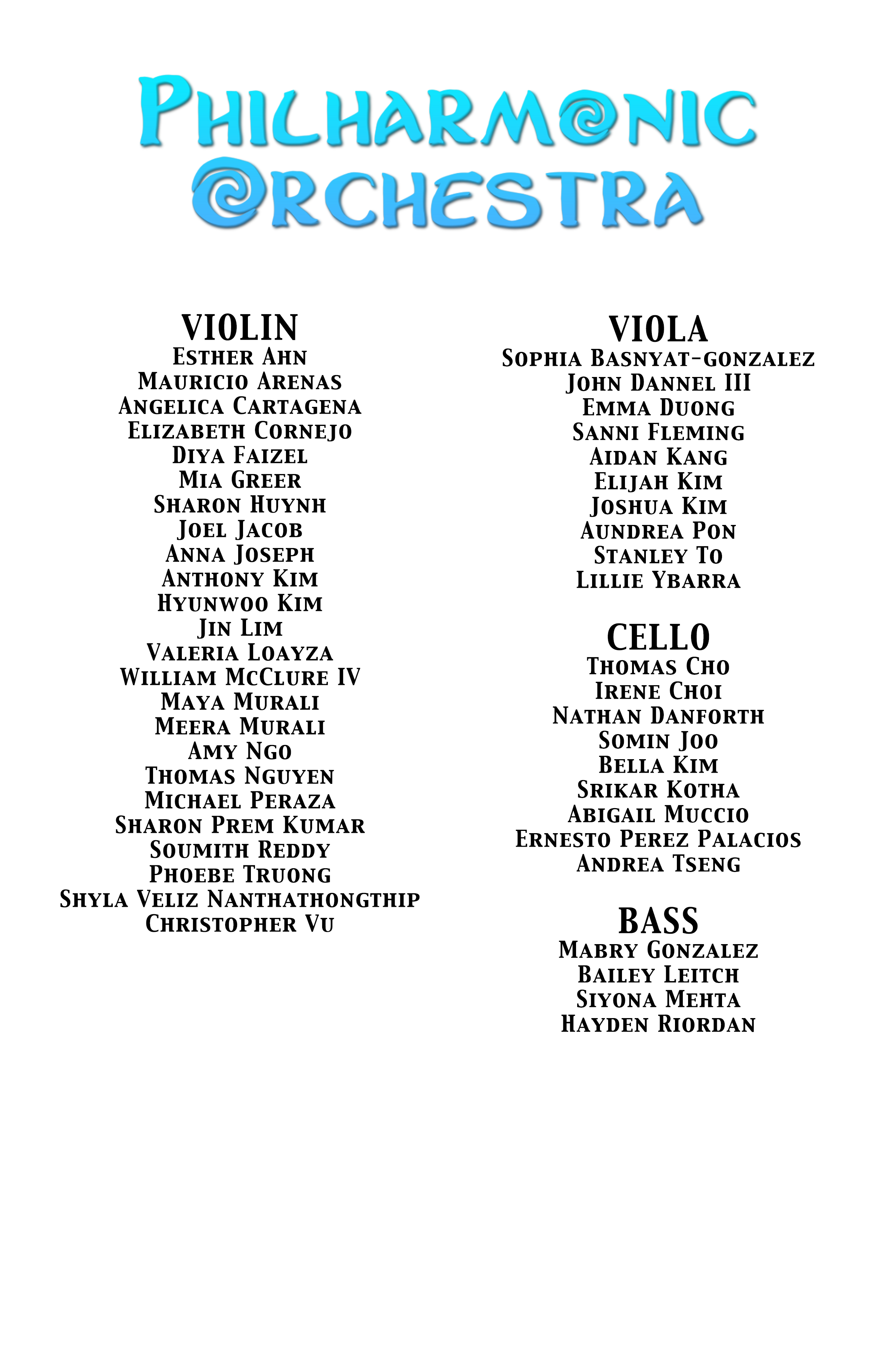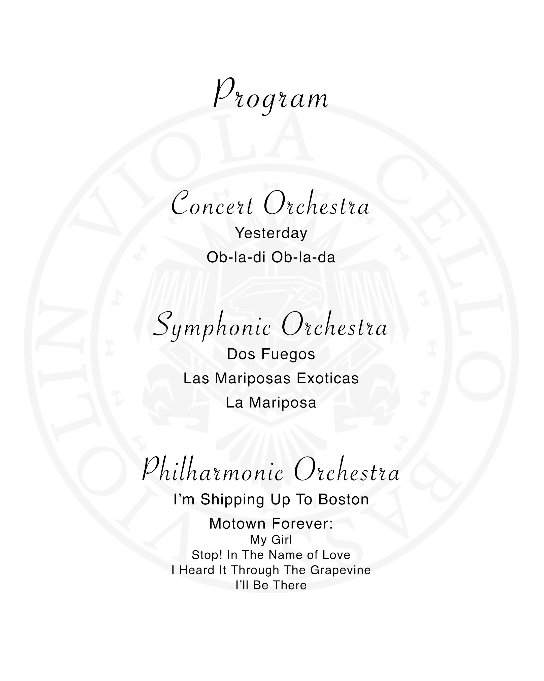 Middle School Symphonic & Chamber Call Time: 2:45pm