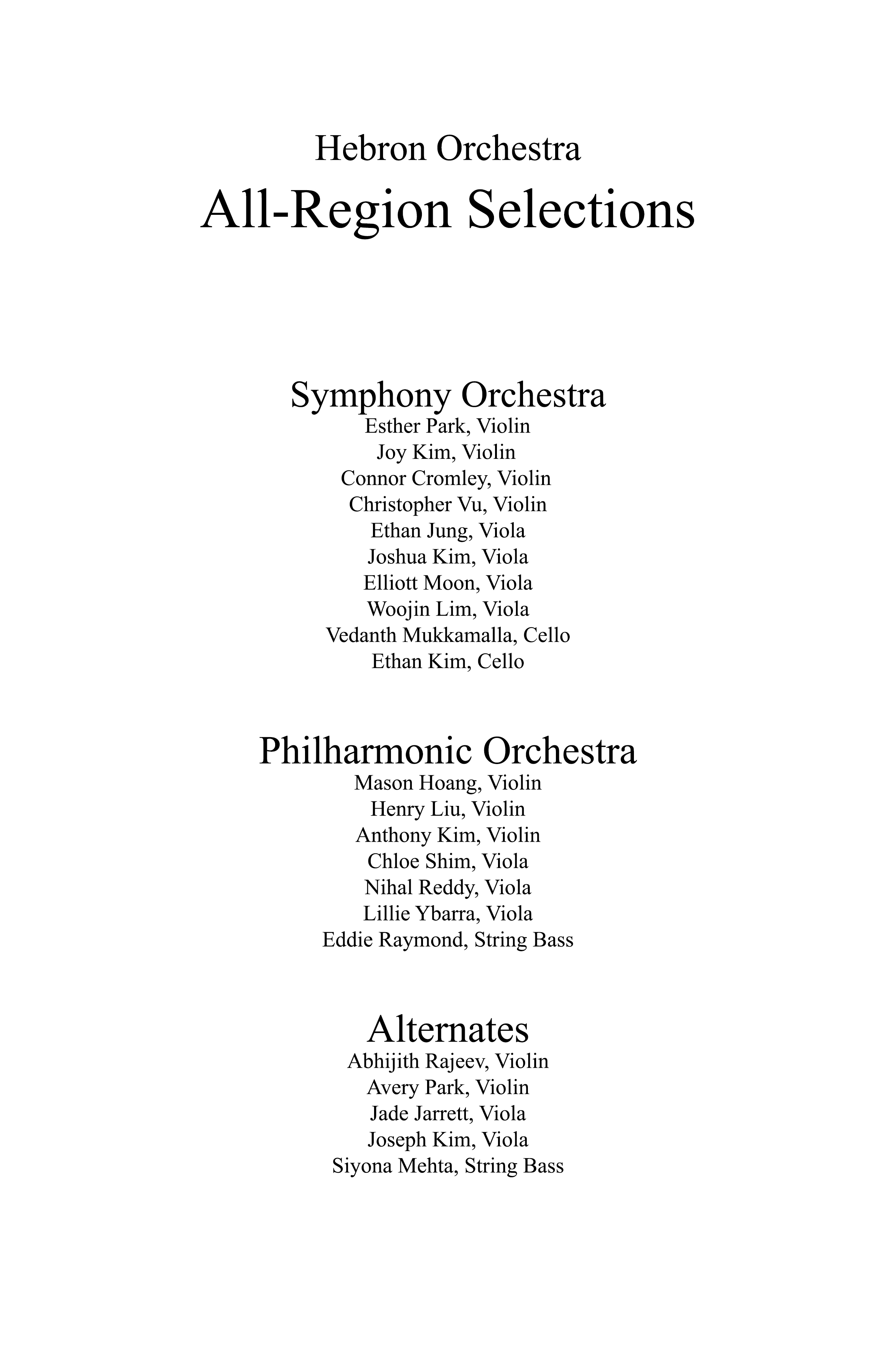 Hebron Orchestra Winter Concert