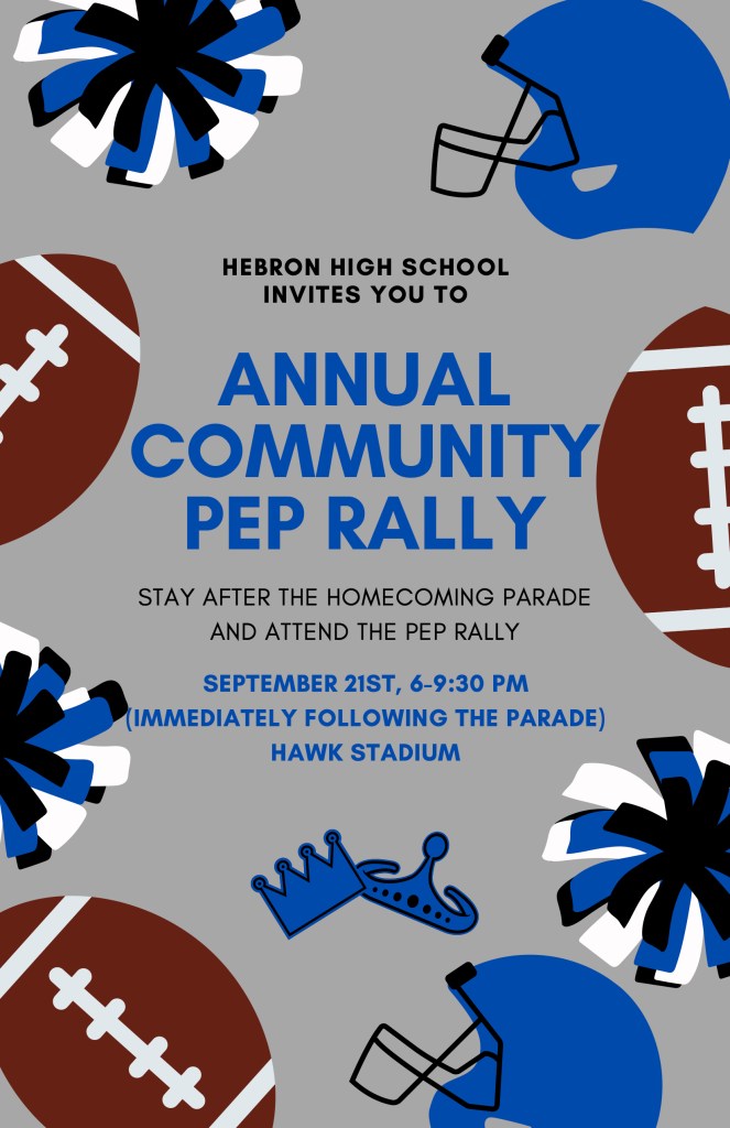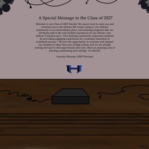 We are so excited to welcome you all to Hebron for our Future Hawks Orchestra Pep Rally! Our theme this year is “Movie Magic” and we can’t wait for us all to play music together at the concert!