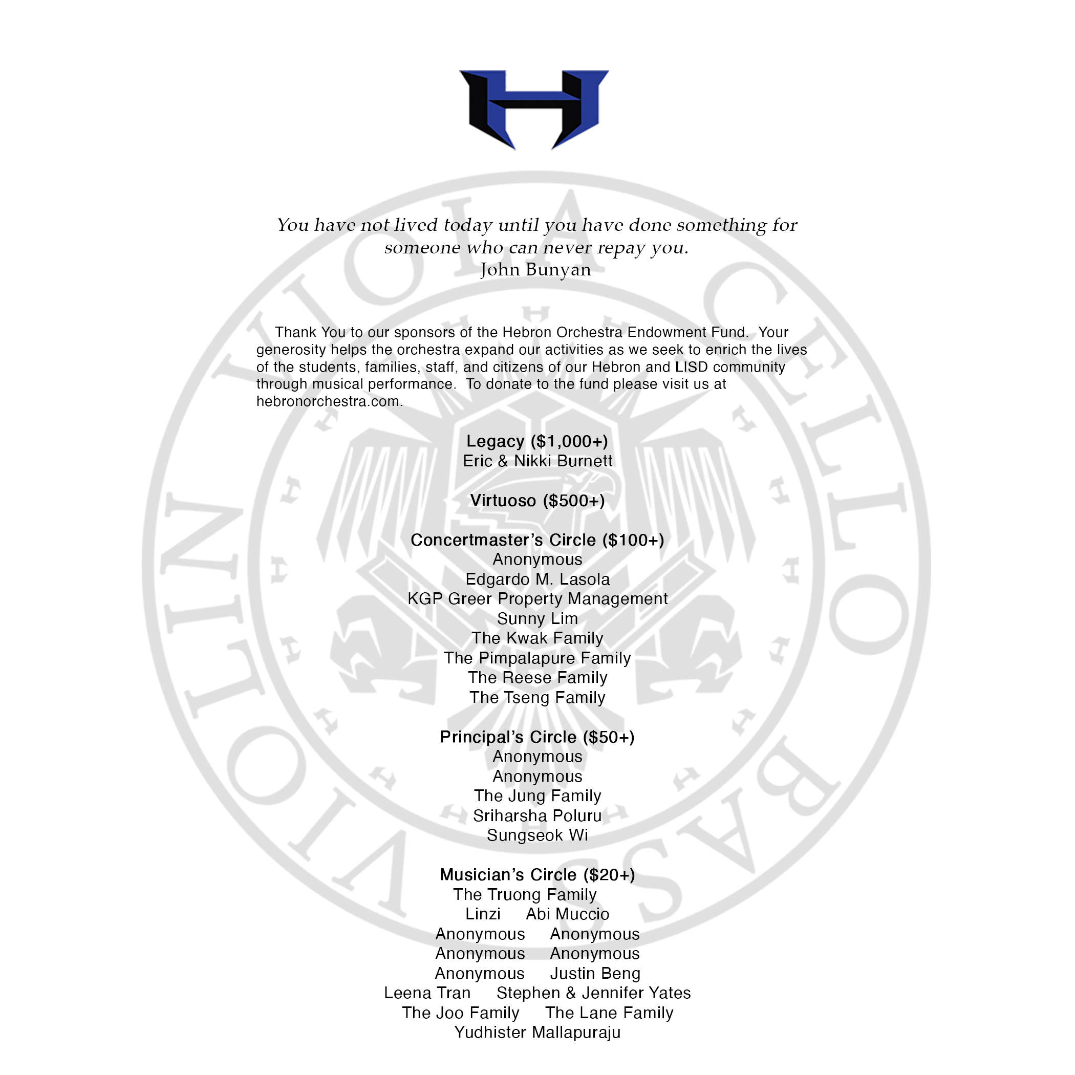 Thank you all for your support of our orchestra and we hope to see you at the next event!