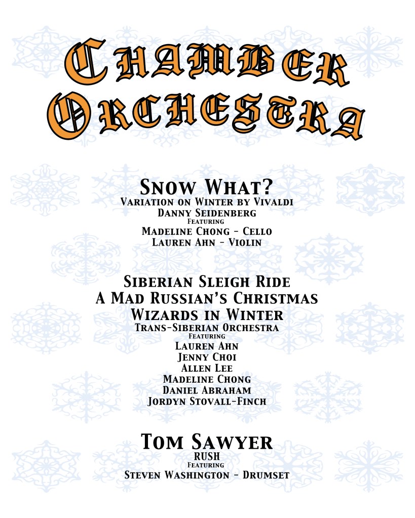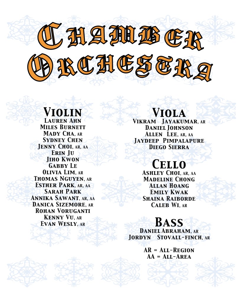 Our concerts are right around the corner! Our Chamber Orchestra has been working diligently to prepare a thrilling program of music from a variety of inspirations. You might notice a new twist on some familiar music, or maybe hear some musical styles you’ve never heard before! They will perform their honor orchestra program twice next week: